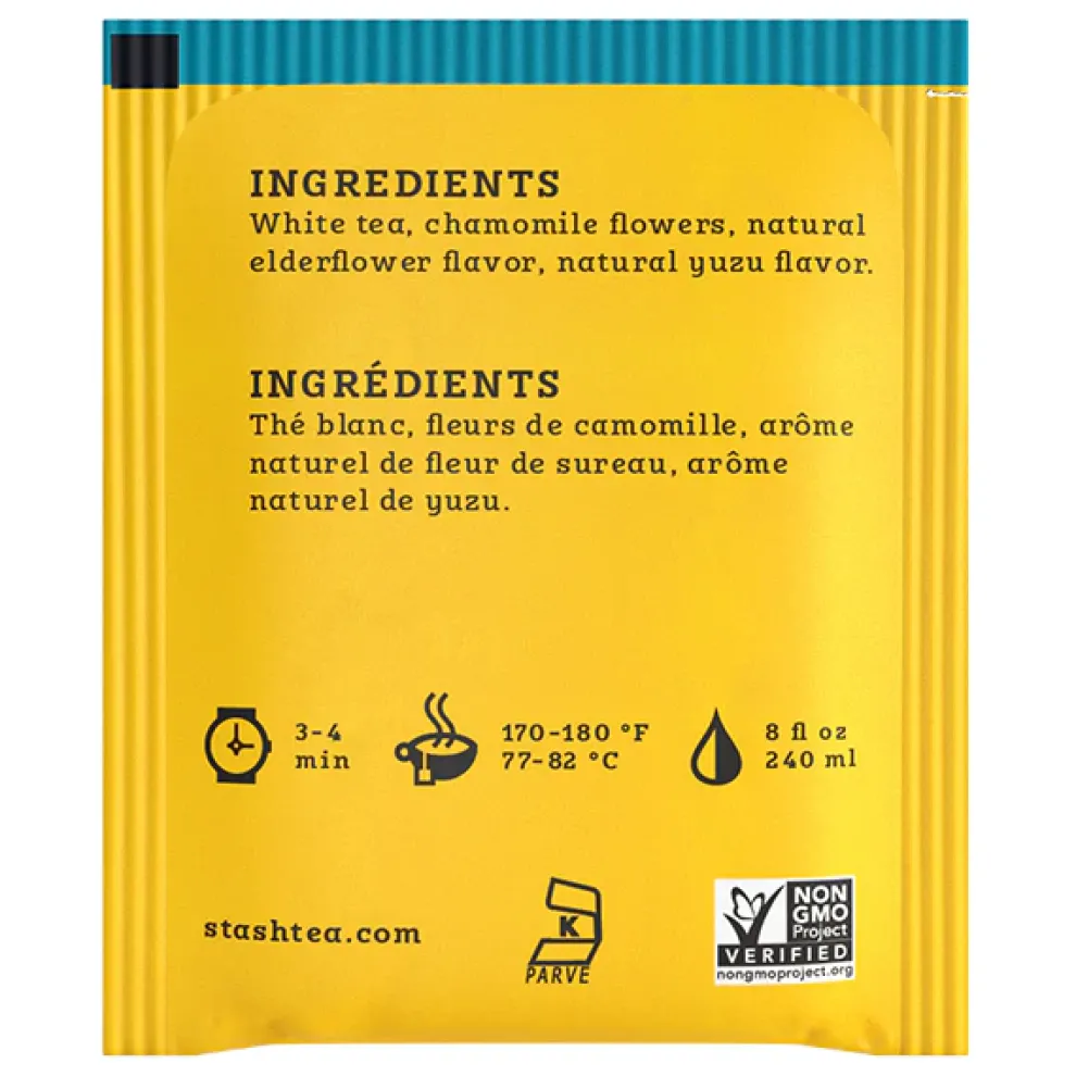 Ingredients White Tea, Chamomile Flowers, Natural Elderflower Flavor, Natural Yuzu Flavor.